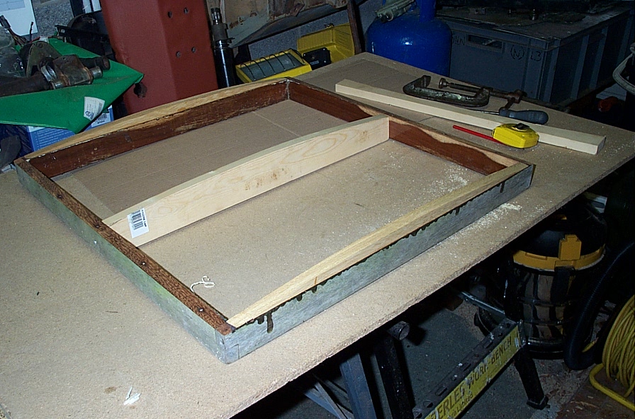 Iroko planking copper riveted onto steamed rock-elm ribs. The keel and deadwood are Iroko and the stem, hog, floors are laminated Iroko. The clinker planking was laid to a 15mm finished thickness and each plank has two fastenings between each timber. Ten gauge copper nails are used on timbers and 12 gauge on lands, roved up on 10mm copper roves. Hood end and garboard fastenings are silicon bronze up to the deck. All centreline fastenings through keel, deadwoods and floors are galvanised mild steel. There are four laminated Iroko hanging knees per side under mast beams and main beams. Carlines, breasthook, quarter knees, rubbing band and samson post are Iroko.